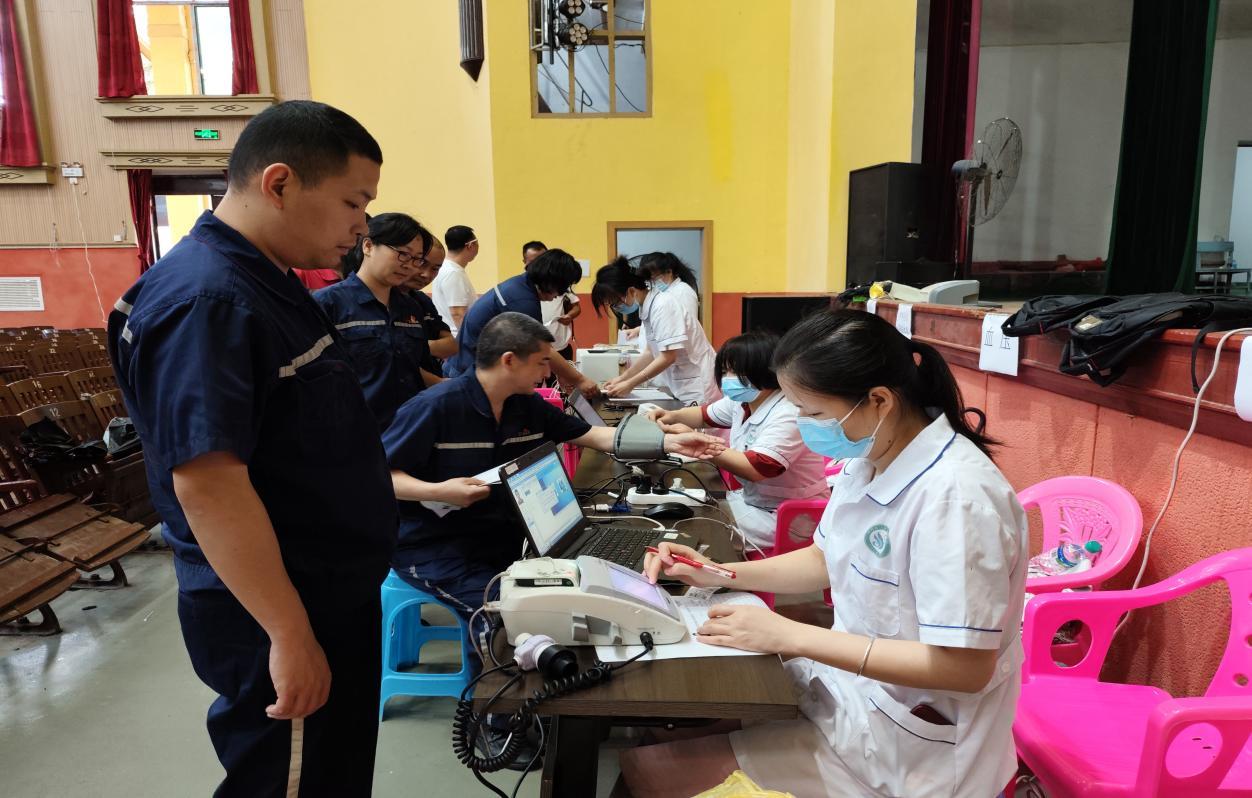 来自赣州明德职业病医院的医生们聚焦矿山企业职业健康风险,设置了胸部正位、常规心电图、血常规等项目,为职工的身体状况进行了全方位检查。