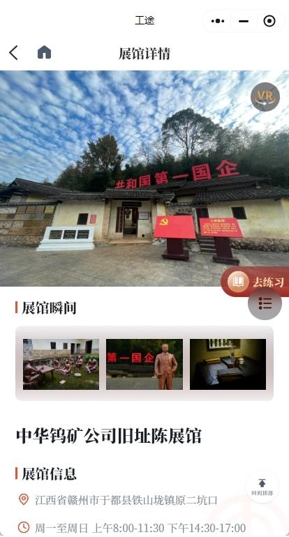 近日,中华钨矿公司旧址陈展馆正式入驻全国职工爱国主义教育基地线上展馆“工途”小程序。