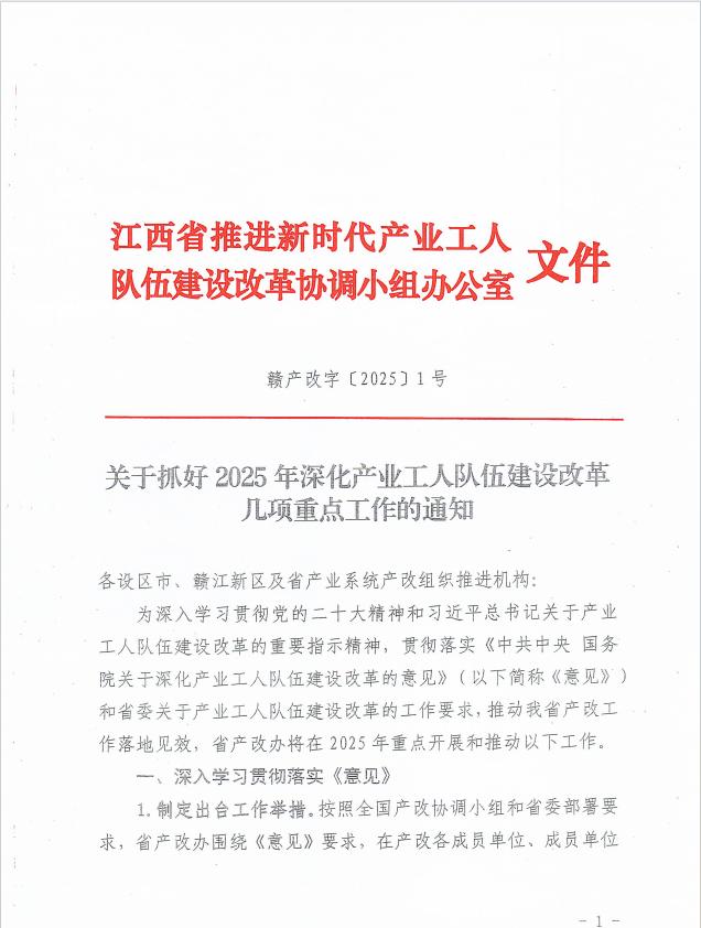 关于抓好 2025年深化产业工人队伍建设改革几项重点工作的通知