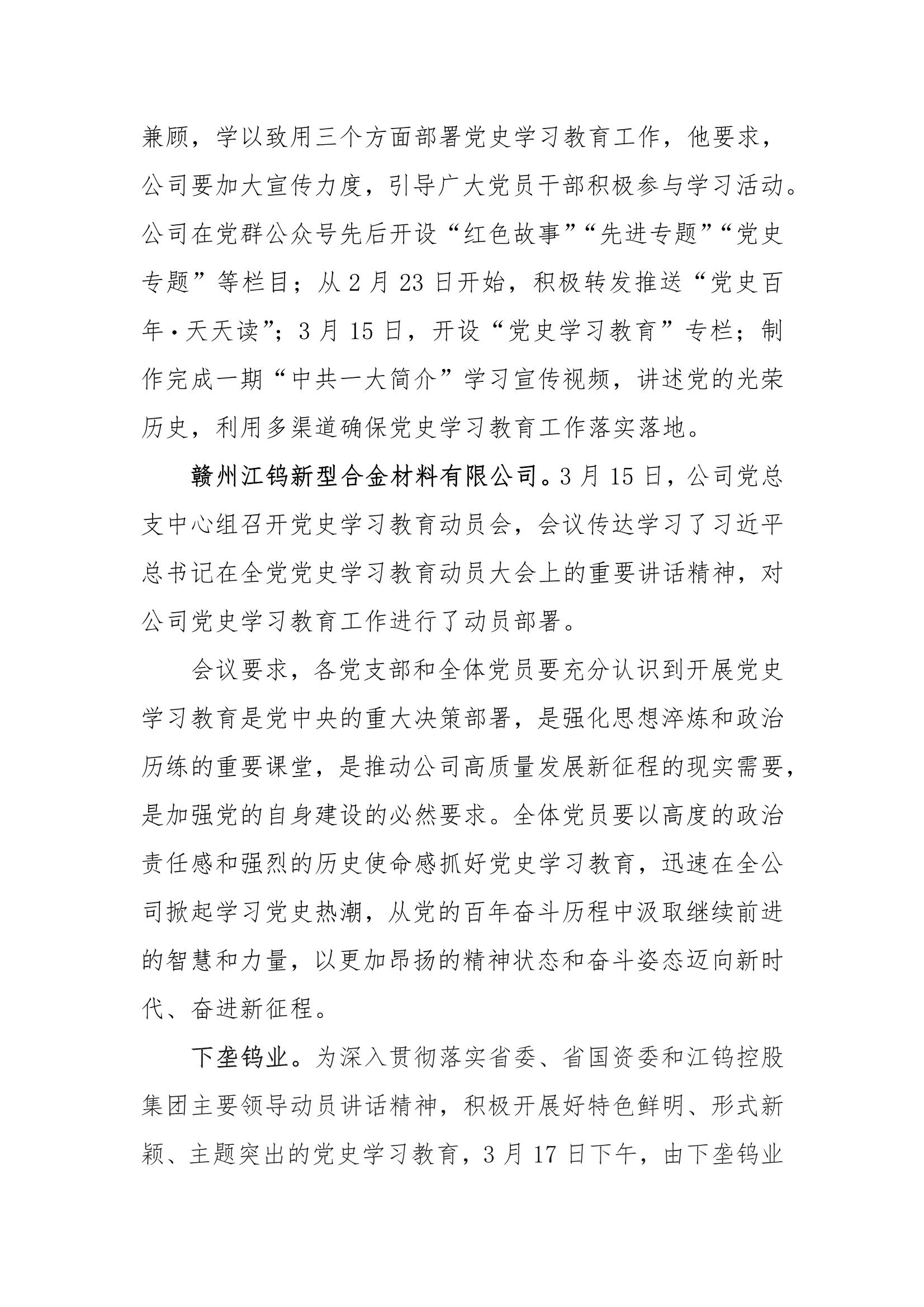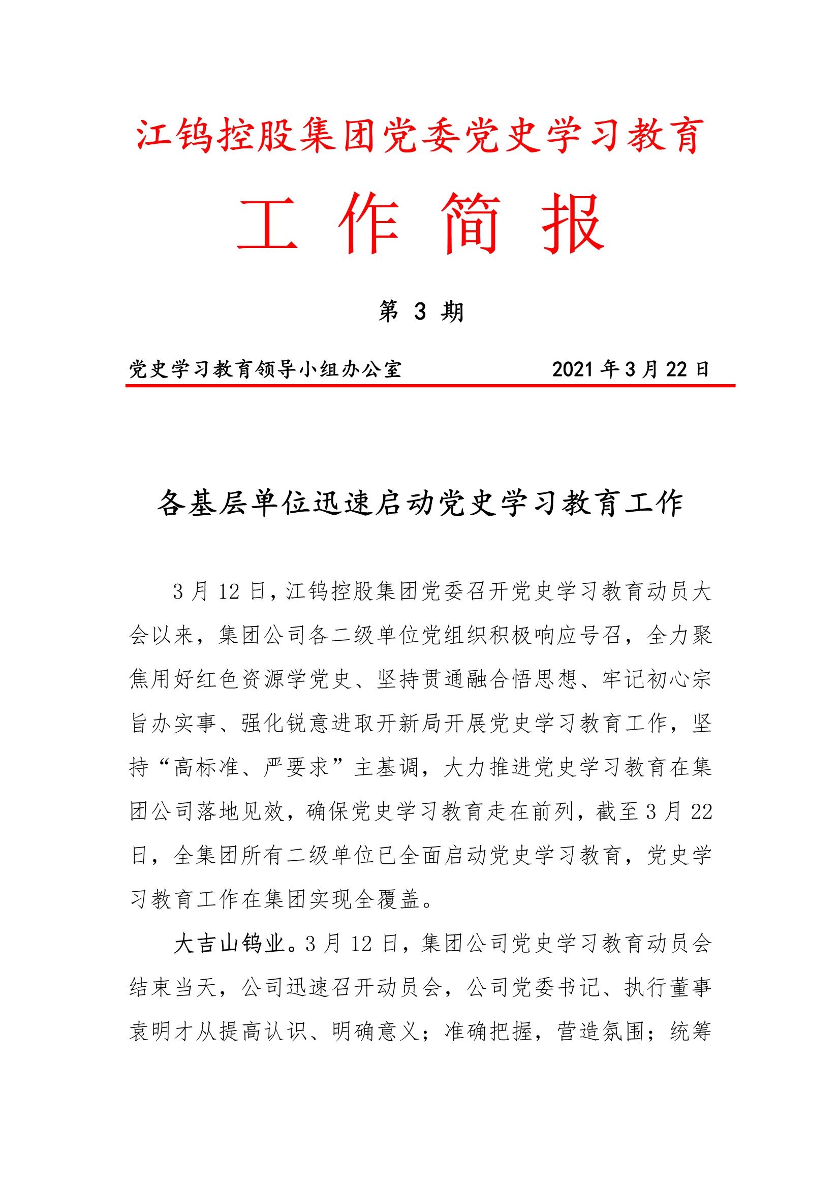 江钨控股集团党委党史学习工作简报(第三期)