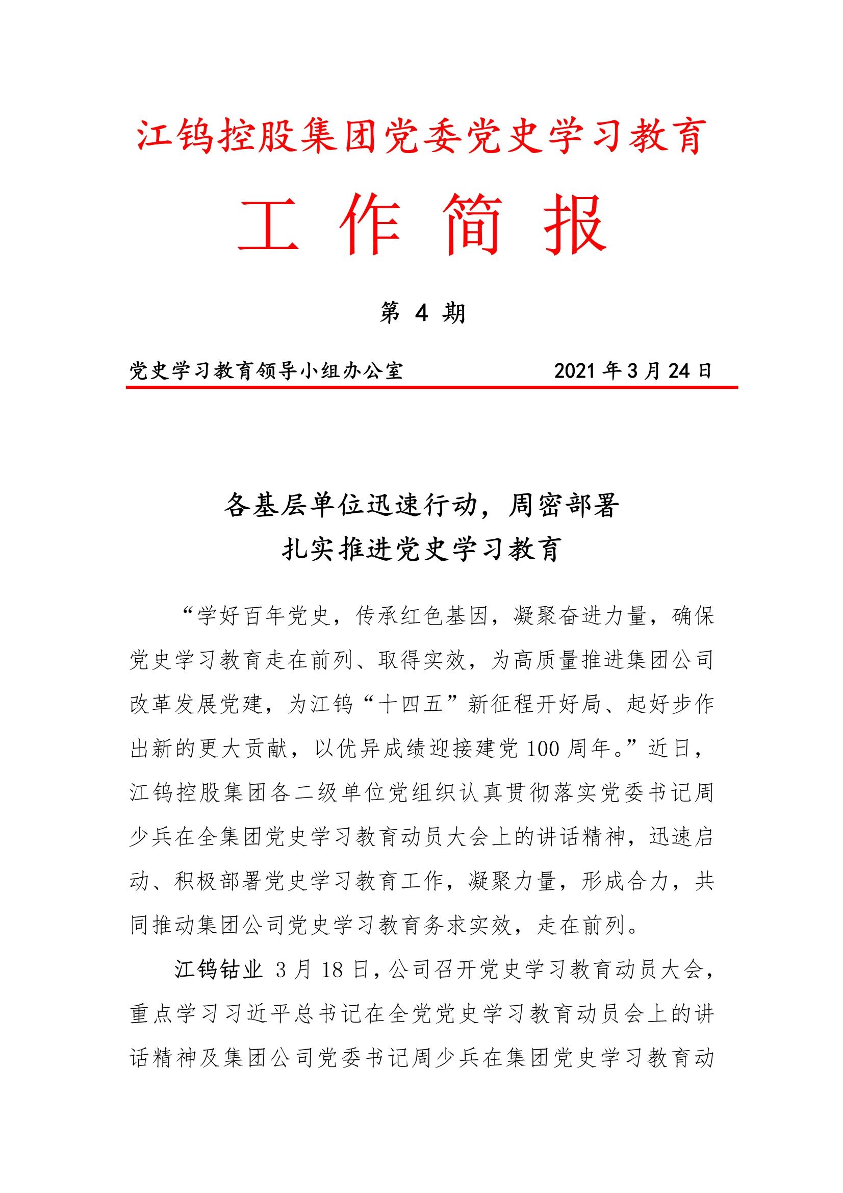 江钨控股集团党委党史学习工作简报(第四期)