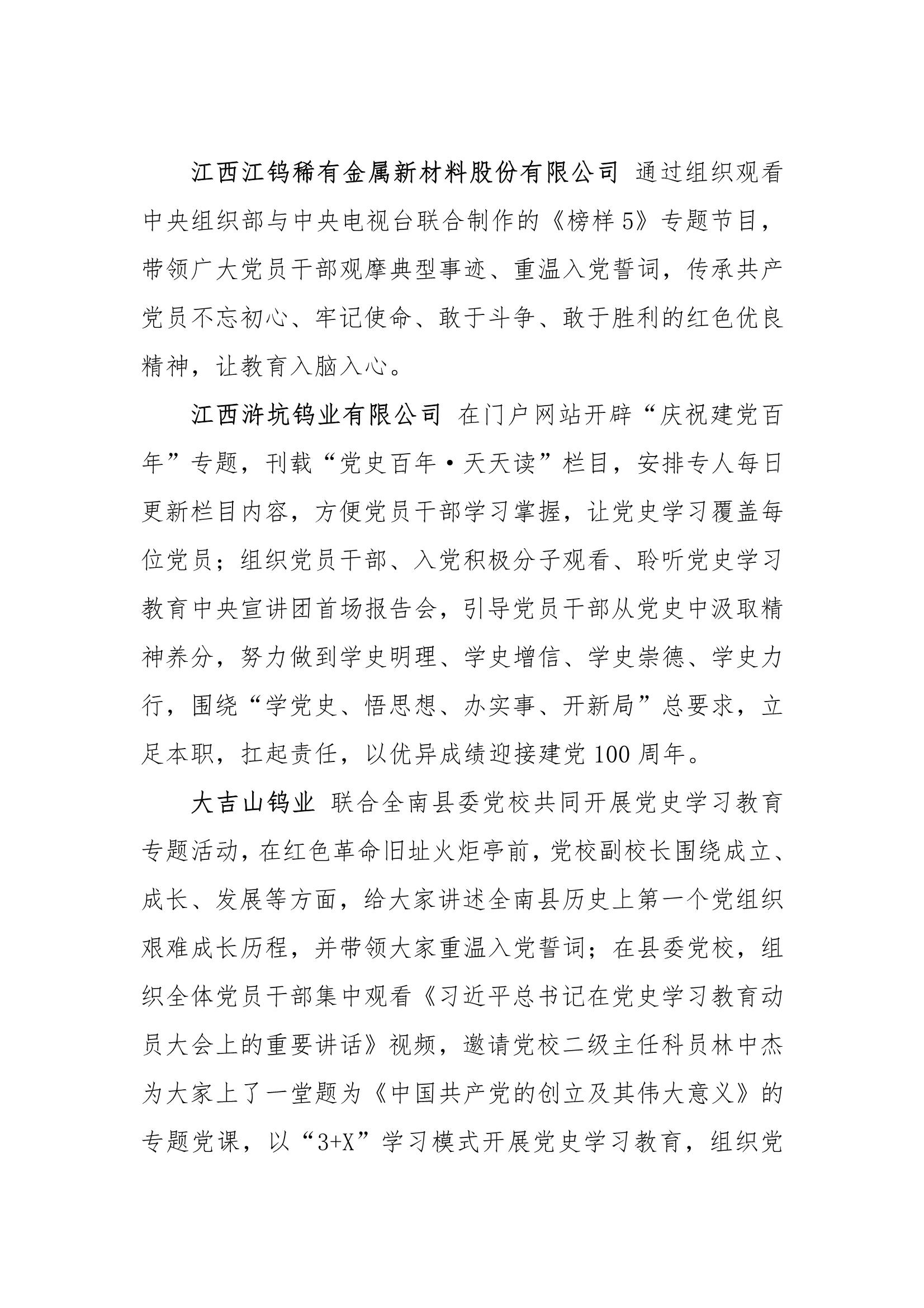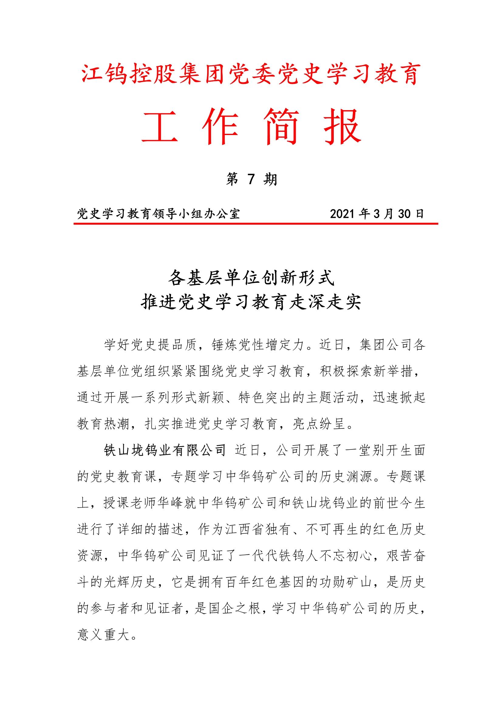 江钨控股集团党委党史学习工作简报(第七期)