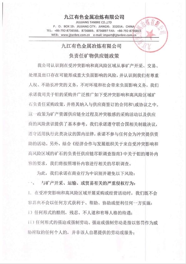 九冶负责任矿物供应链政策
