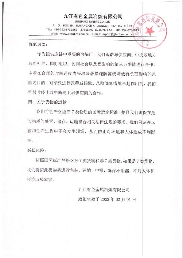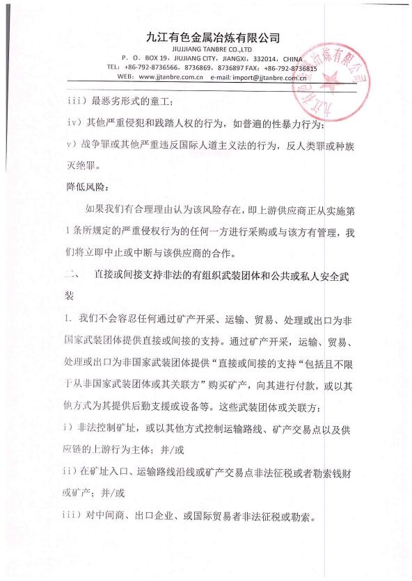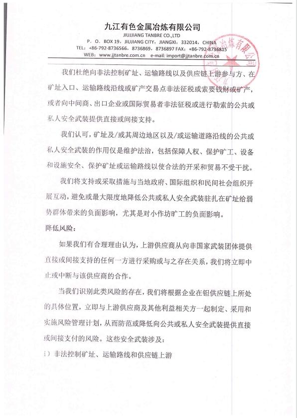 : j九江有色金属冶炼有限公司2023年负责任矿物供应链尽职调查报告