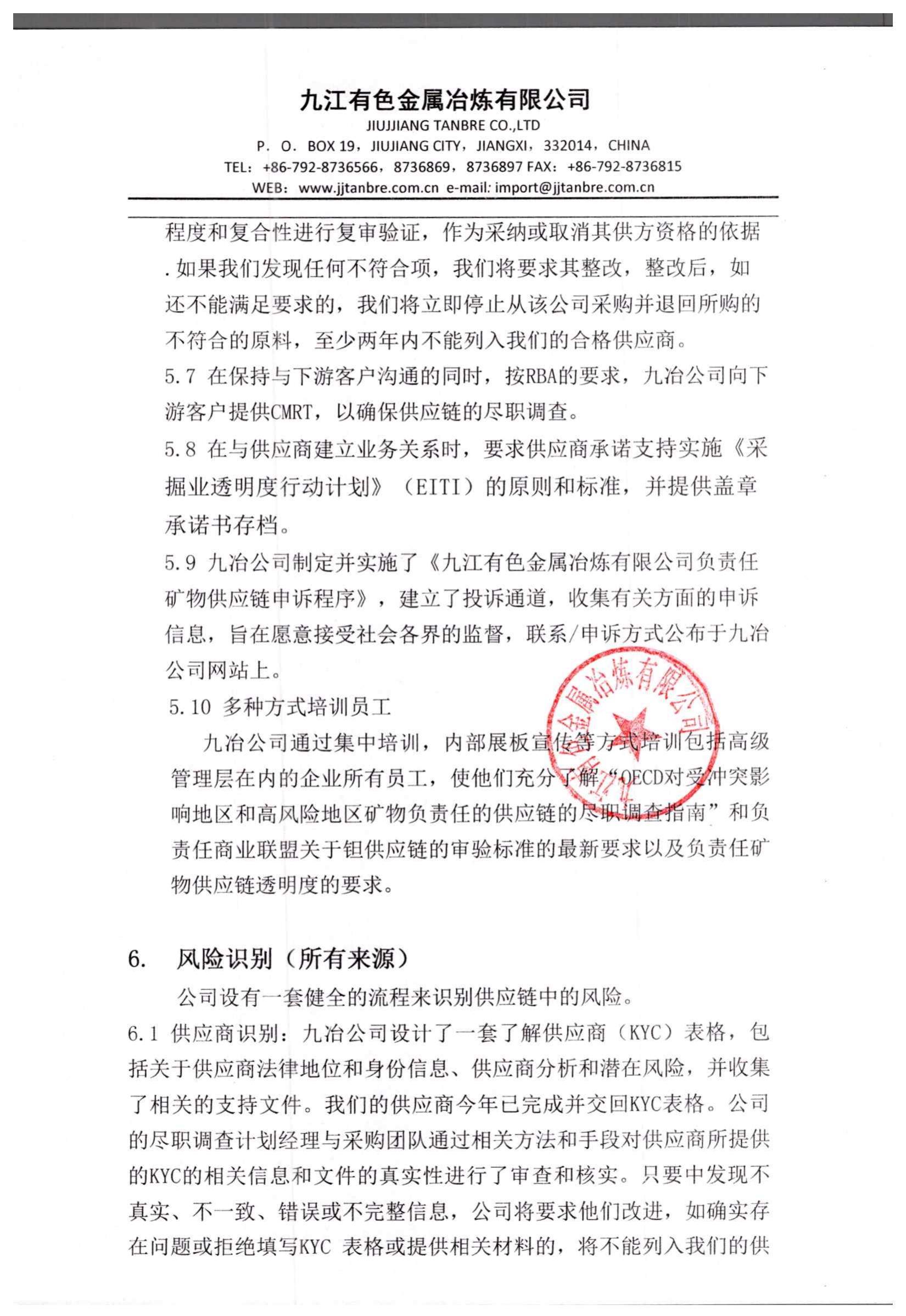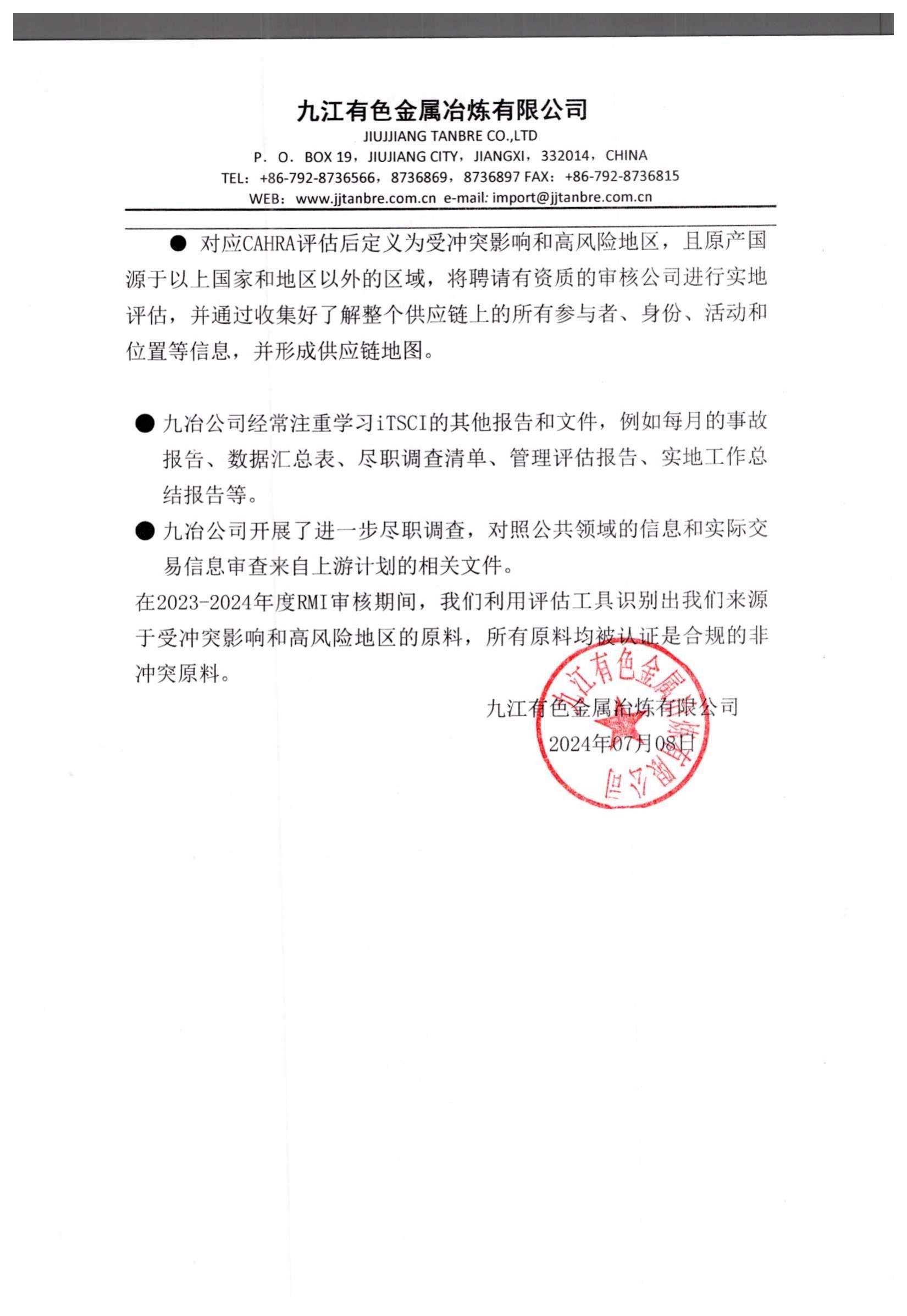 j九江有色金属冶炼有限公司2023年负责任矿物供应链尽职调查报告