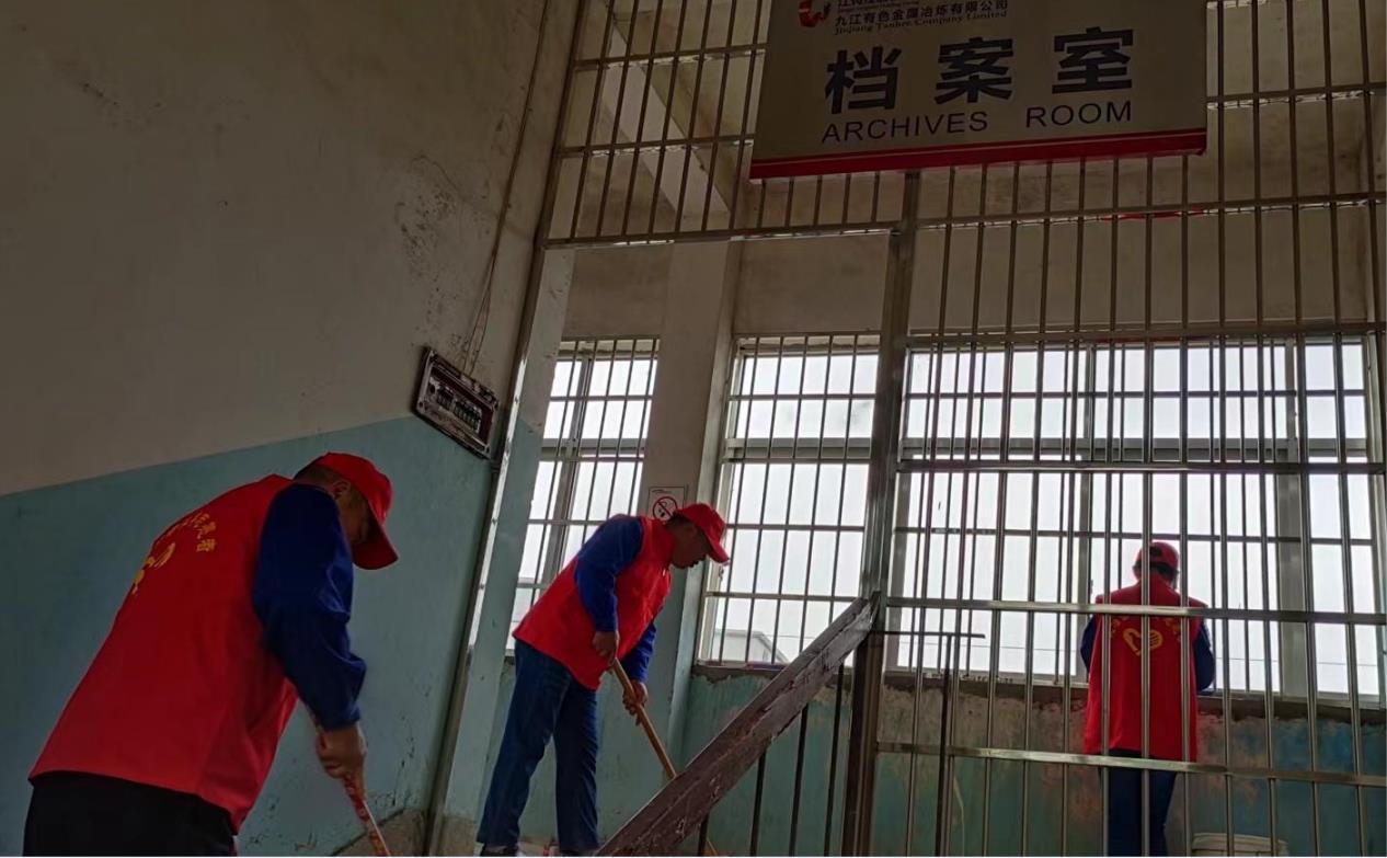在档案资料转移新库过程中,平安志愿者积极做好重要文件资料的看护和卫生清理。