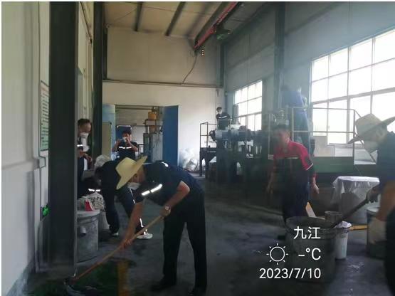 在车间现场,组织人员对作业现场的设备、地面、墙壁、窗户、物料桶等进行清扫清洁,通过大家共同努力,现场“6S”有明显变化,现场面貌焕然一新。