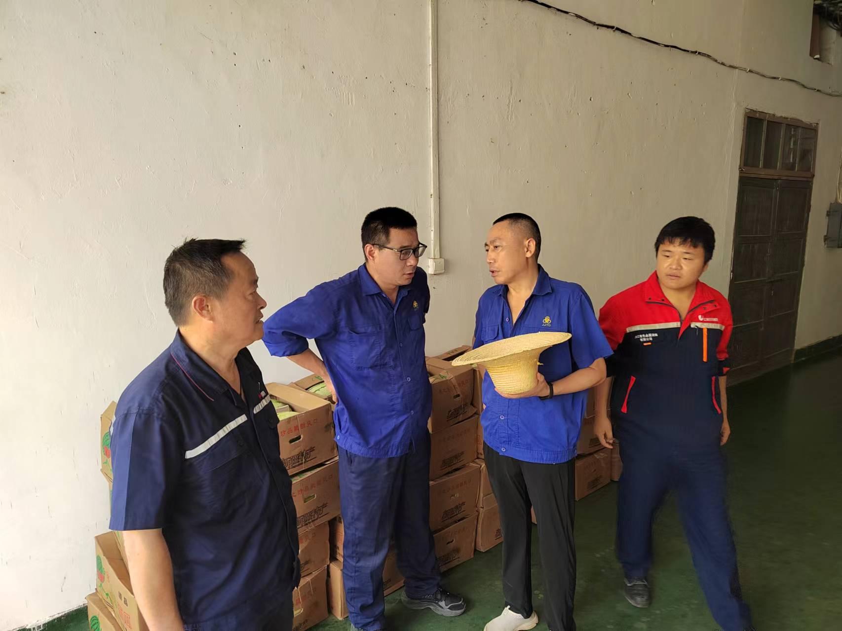 7月10日上午,为了保障员工的身体健康,确保安全生产,工会主席贺伯诚、副总经理余汤、张日升深入各车间班组,开展了“清凉一夏 情系职工”送清凉活动,为奋战在一线的员工送去了丝丝凉意和诚挚关怀。
