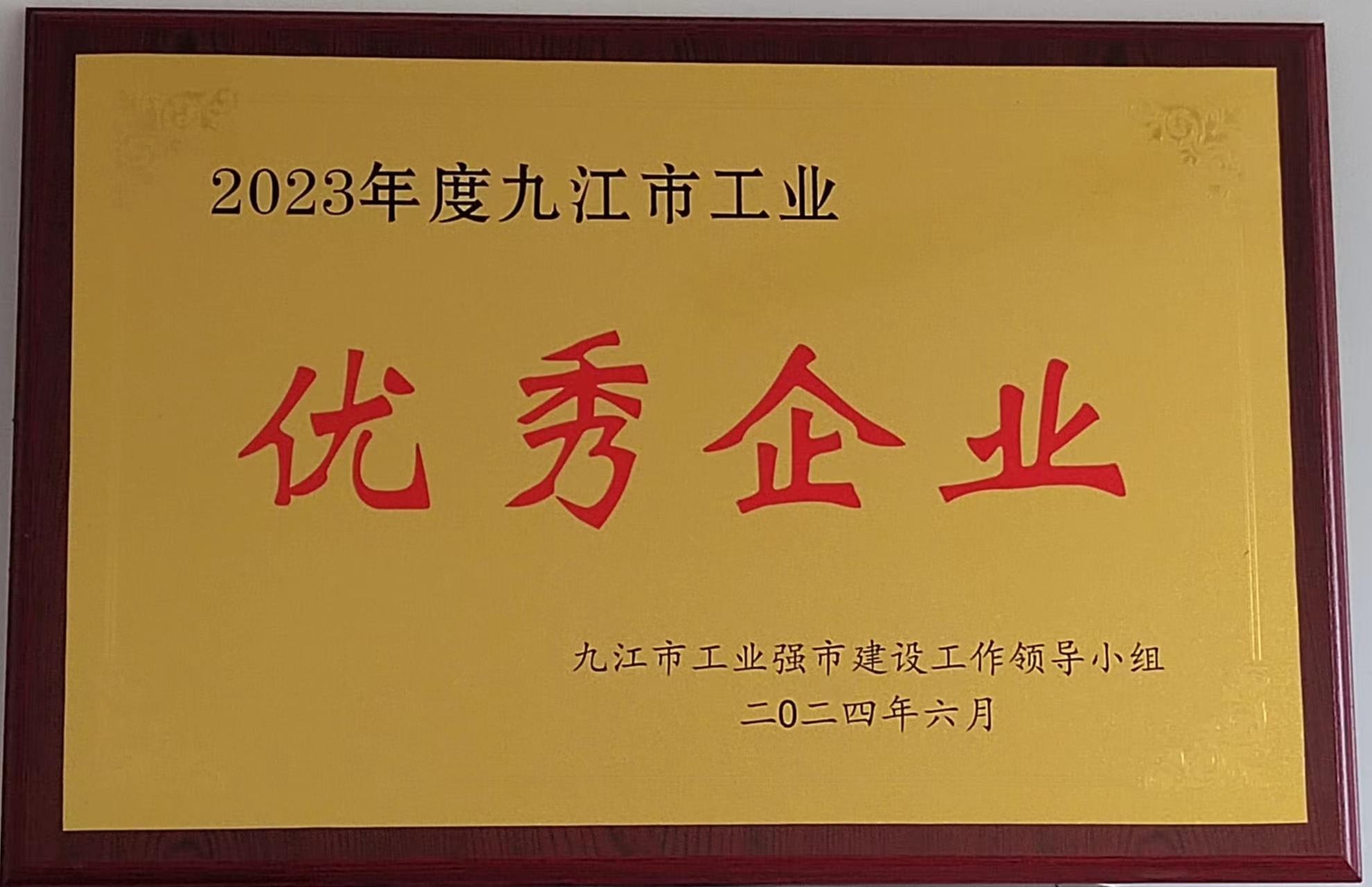 九冶公司荣获九江市2023年度优秀企业荣誉称号