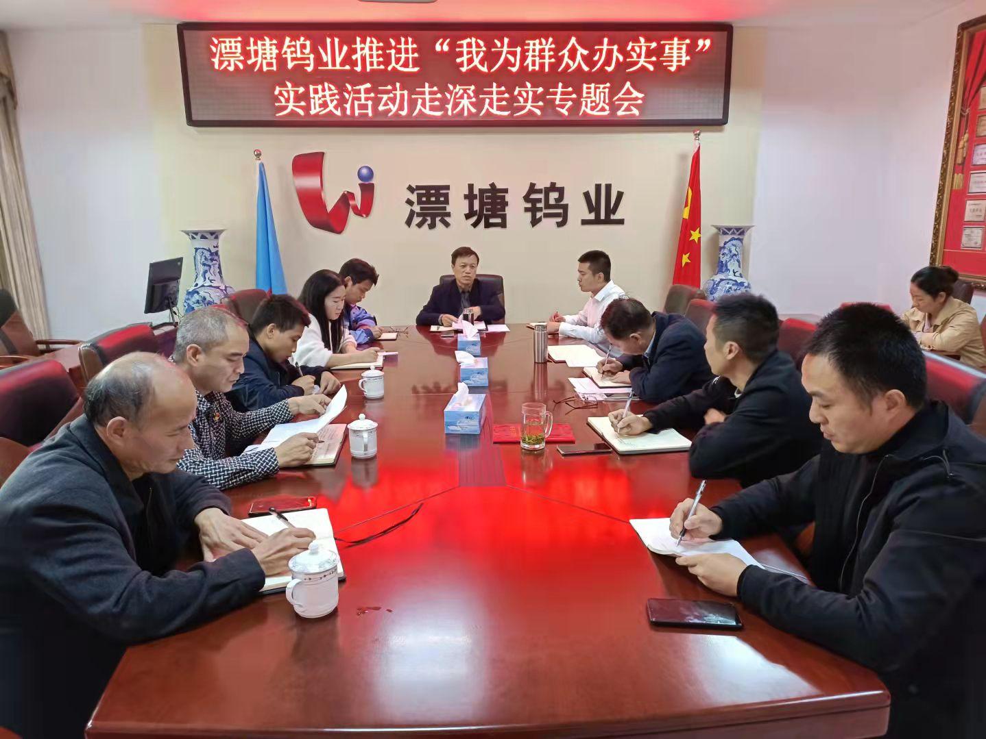 11月5日上午,漂塘钨业党委副书记雷荣华在办公楼三楼会议室主持召开推进“我为群众办实事”实践活动走深走实专题会。主业单位党总书记、干事,机关相关部门负责人参加会议。