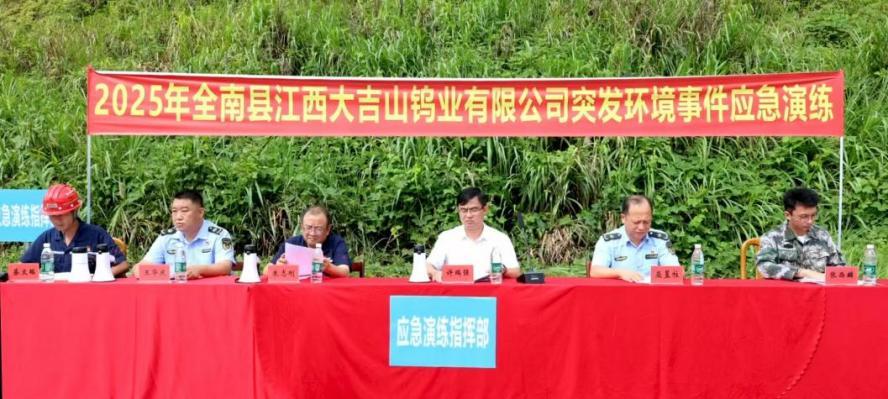 此次演练由全南县生态环境局、县应急管理局、县消防救援大队、大吉山镇人民政府、大吉山钨业联合开展,共约80人参与。