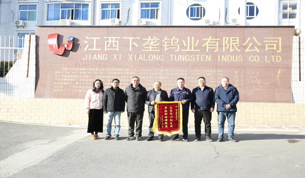 1 月 17 日,龙威公司总经理芮校龄一行前往下垄钨业,送上一面写有“兄弟齐心助发展 单位联动谱新篇”的锦旗,对下垄钨业协助龙威公司排除井下电缆故障,避免淹井危险一事表达诚挚谢意。