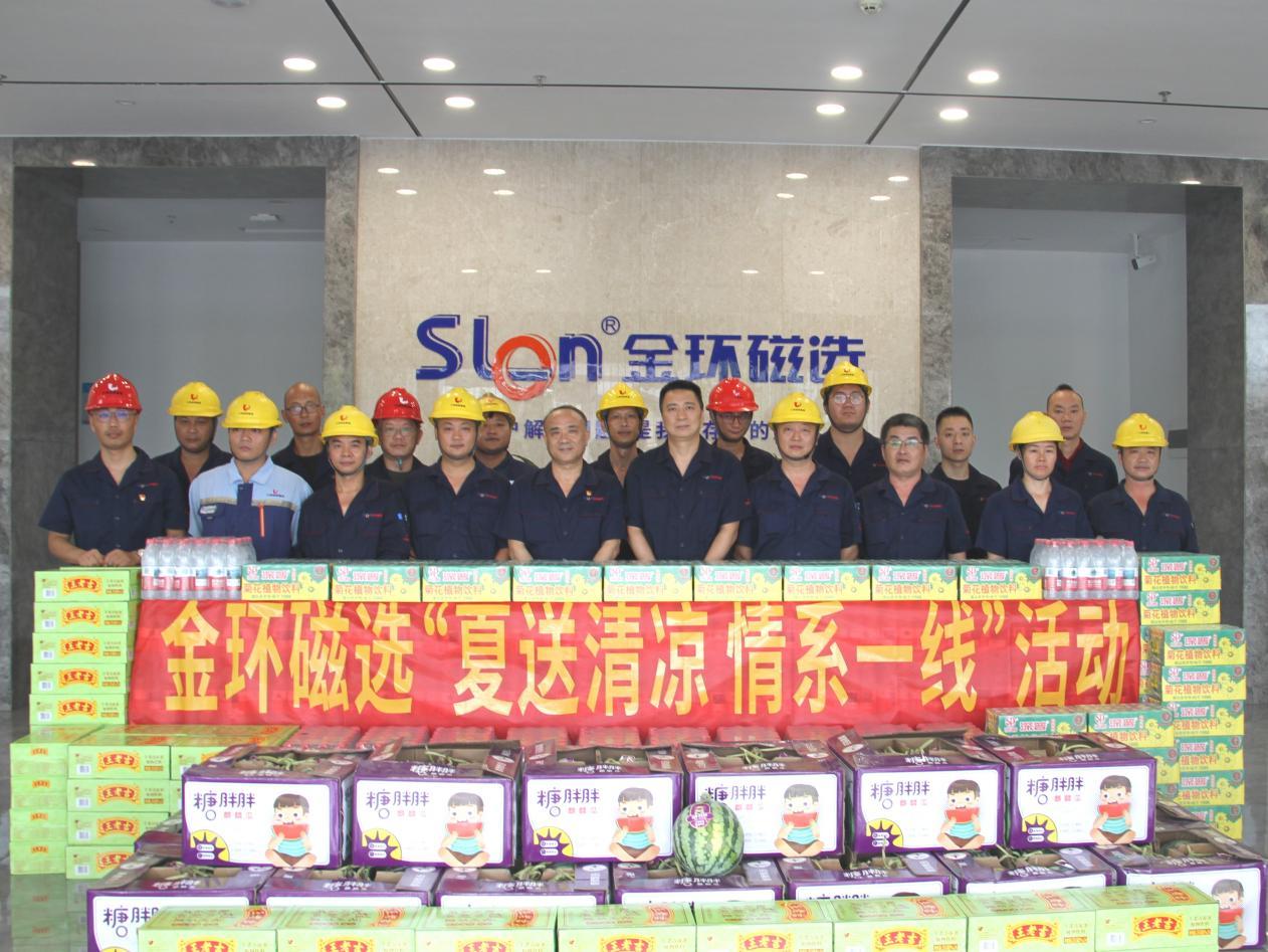 7月22日,金环磁选开展“夏送清凉 情系一线”慰问活动,为一线职工送上防暑药品、清凉饮料等各类防暑降温物资,用贴心举措筑牢高温作业“防护网”。