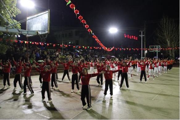 晚上7点整,公司灯光球场彩旗飘扬,座无虚席。来自公司上坪钨矿、选矿厂、机关和黄沙钨矿及镇卫生院、镇中心幼儿园的五支参赛队伍冒着微风细雨,身着靓丽的参赛服,各个精神饱满、神采飞扬。随着音乐响起,参赛选手们伴随着欢快的音乐节拍,踏着轻快的节奏,时而绕成圈、时而分散,变换着各种队列,赢得了现场观众的阵阵欢呼和掌声。